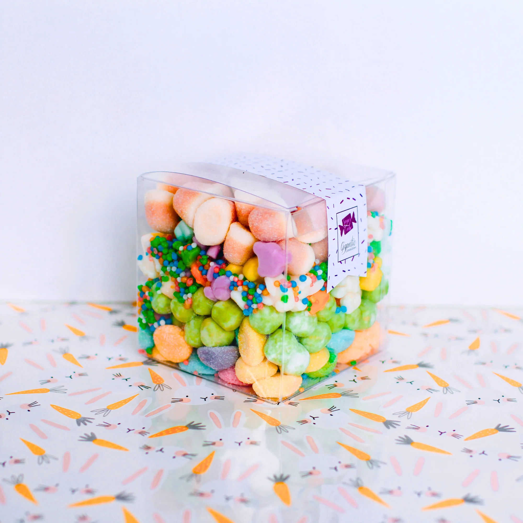 Celebrate the season in a big way with our Spring Gigantic CandyGram! Packed with approximately 1 kg of fresh and delicious candy, this oversized cube features one of our fun, seasonal candy mixes, perfect for gifting, spring events, or a little personal treat.